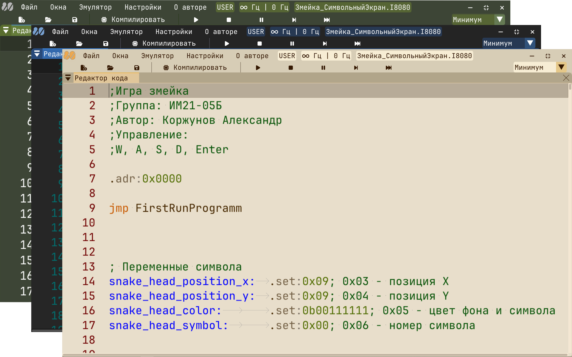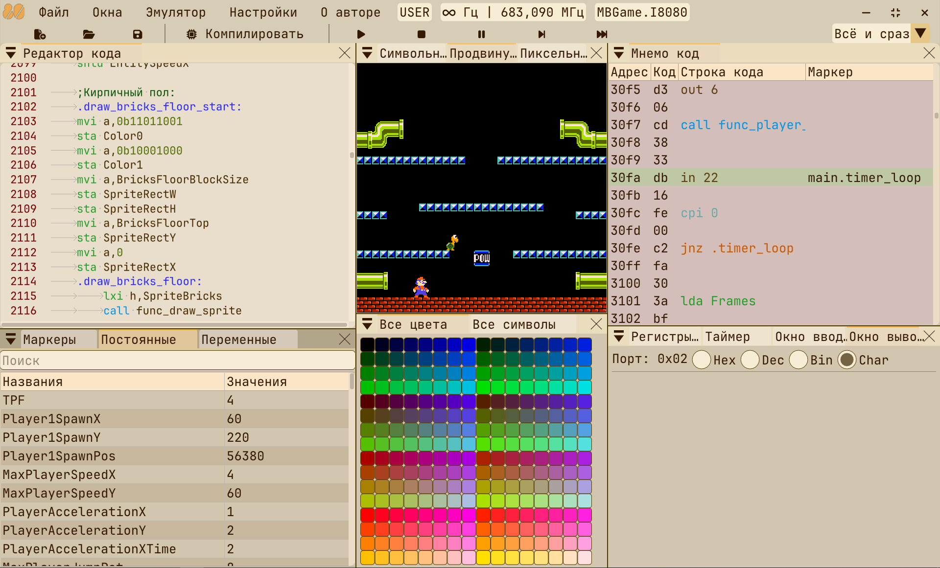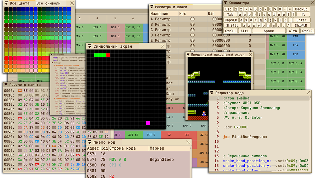 Подробное объяснение работы с эмулятором и инструкций процессора intel8080 внутри программы.